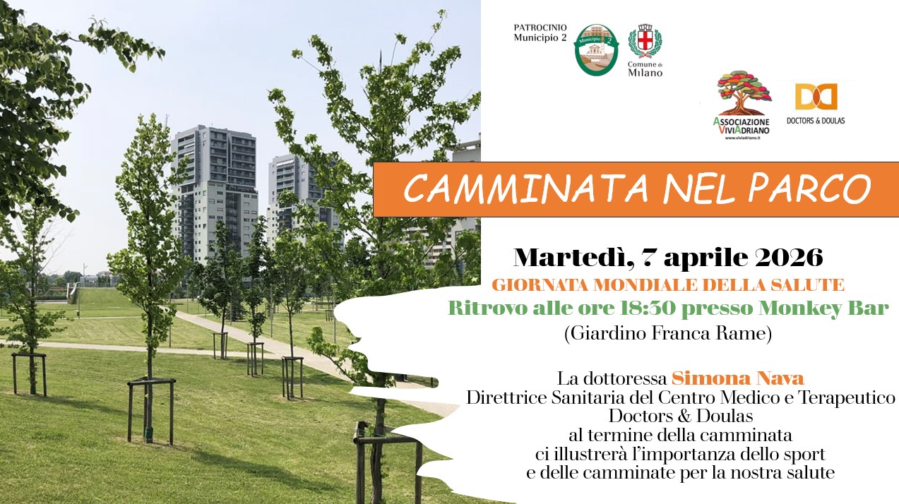 Al termine del percorso interverrà la dott.ssa Simona Nava, Direttrice Sanitaria del Centro Medico e Terapeutico Doctors & Doulas, che offrirà una breve illustrazione sull’importanza dello sport e della camminata quotidiana per la salute e il benessere generale.