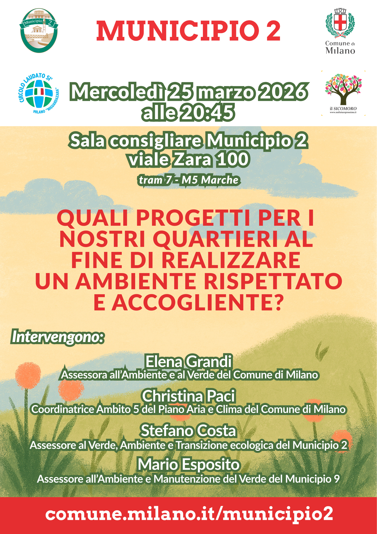 Tutta la cittadinanza è invitata all’incontro pubblico che si terrà presso la sala consigliare del Municipio 2, dedicato ai quartieri del nostro territorio e che rappresenta un’opportunità per approfondire le iniziative in corso e i programmi futuri relativi alla tutela dell’ambiente, al verde urbano e alla qualità dello spazio pubblico.