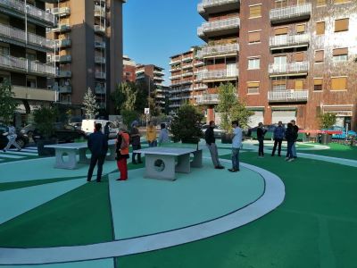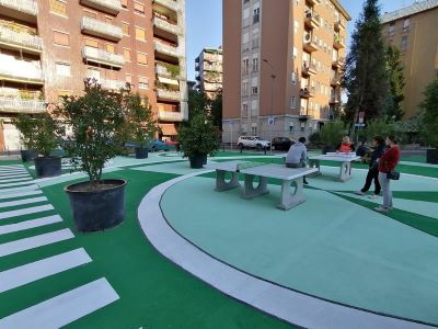 Il restyling di Piazzetta Santi Patroni d’Italia è uno degli oltre 65 progetti che hanno aderito all’Avviso Pubblico Piazze Aperte del 2019. L’intervento di urbanistica tattica ha realizzato una nuova area pedonale di circa 500 metri quadri, trasformando quello che di fatto era un parcheggio in un nuovo spazio di socializzazione e di incontro.