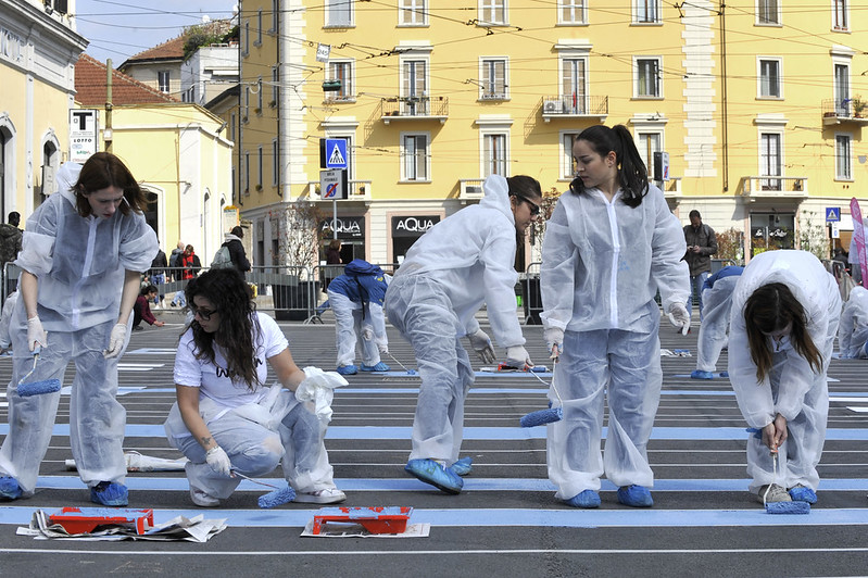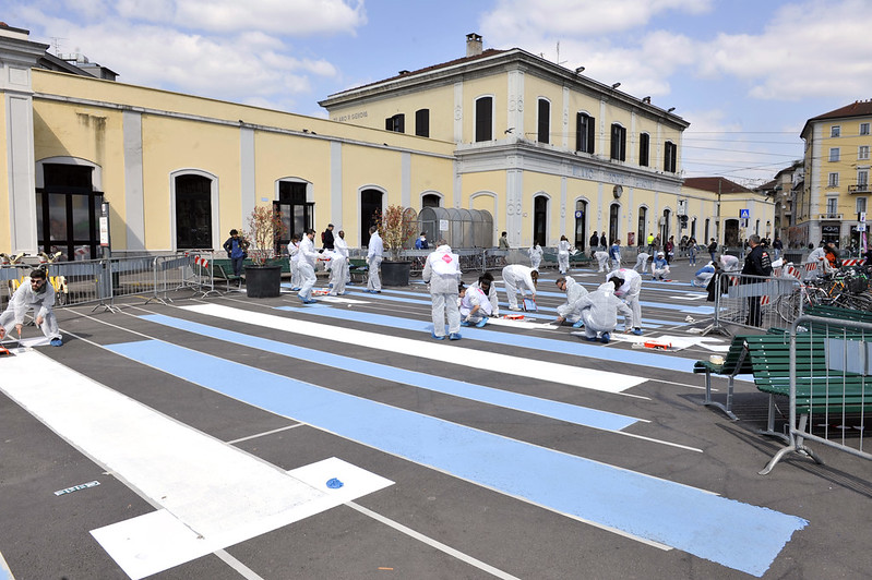 I volontari di Retake Milano hanno completato l’intervento con la verniciatura sia dei nuovi vasi che di quelli preesistenti, tornando dopo un anno a prendersi cura della piazza a strisce bianche e blu. La manutenzione dell'area per 12 mesi sarà in capo a Zack Goodman, attraverso la cooperativa sociale Opera in Fiore. Hanno contribuito all'intervento anche Mapei Spa, per la fornitura di vernici, Colombo EdilRestauri e la Ditta Angioletto Borri per la messa in opera e CarreraJeans per la fornitura di guanti e mascherine agli operatori.