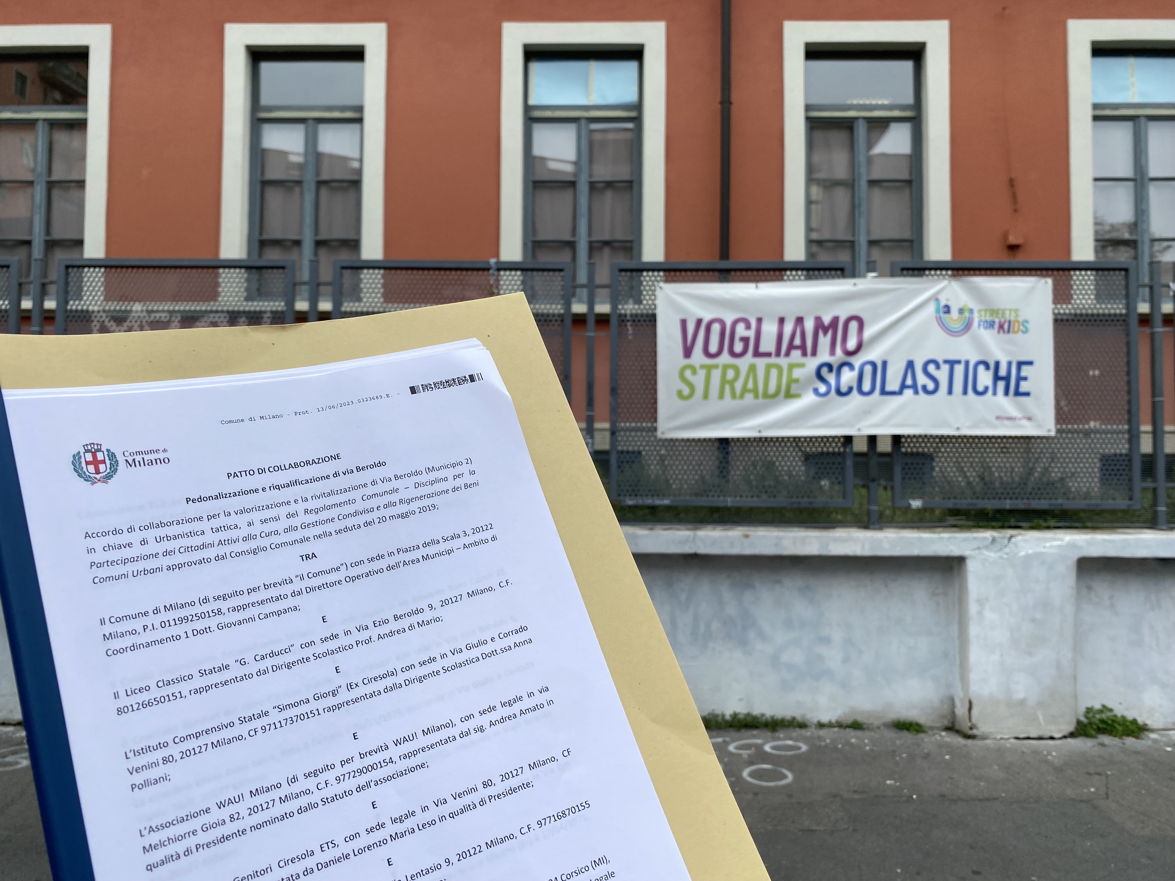 Attraverso la firma di questo patto di collaborazione, le scuole, le associazioni genitori, le associazioni sportive e i tanti cittadini attivi si propongono di animare lo spazio, che da via trafficata si è trasformato in uno spazio pedonale per  renderlo vivo per restituirlo alle bambine, ai bambini, alla ragazze e ai ragazzi che ogni giorno lo frequentano.